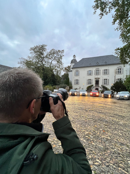 Im wunderschönen Innenhof und im herbstlichen Licht inszenierte unser Fotograf Stefan Krocek die Generationen des 3er als das, was sie sind: automobile Meilensteine. Jedes Modell bekam ein Einzelshooting und am Ende gab es die wunderbaren Gruppenbilder. Wie man hier sieht, hat Stefan Krocek alles gegeben!